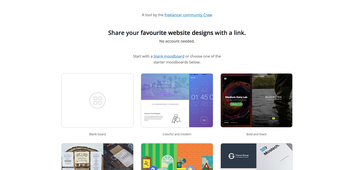 Serving as perhaps the simplest tool on the list, GoMoodboard requires no account to get started.